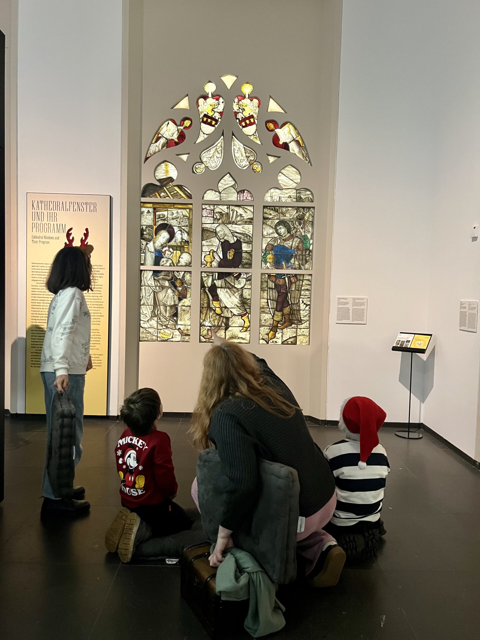 Am Sonntag, 30. November 2025, waren wir wieder zu Gast im Museum Schnütgen – dieses Mal zum ersten Advent. Unsere Vorleserin Susa hatte das wunderbar winterliche Bilderbuch _„Ein Fest für alle“_ von Maike Harel dabei. Eine Geschichte, die zeigt: Nicht jedes Kind feiert Weihnachten – und doch können alle gemeinsam ein Fest erleben.